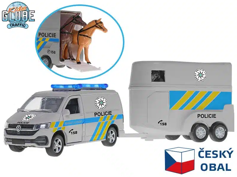 Kids Globe Traffic VW policajná dodávka CZ design 28cm kov spätný chod s prívesom