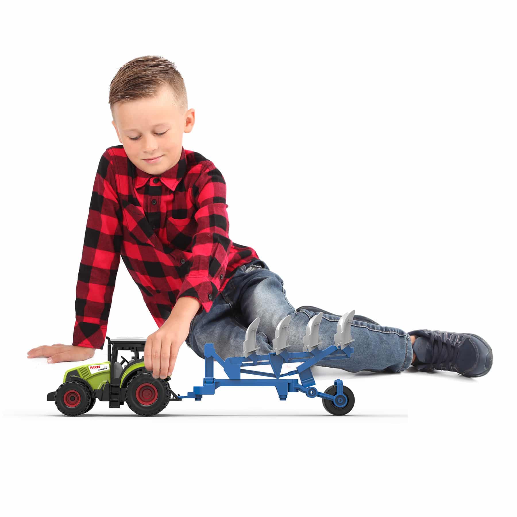 Moderný plastový traktor s prívesom pre orbu, hračka z kolekcie Moja malá farma. Nepostrádateľný pomocník pre každého malého farmára! Príves môžeš odpojiť a traktor využiť k ďalším prácam.