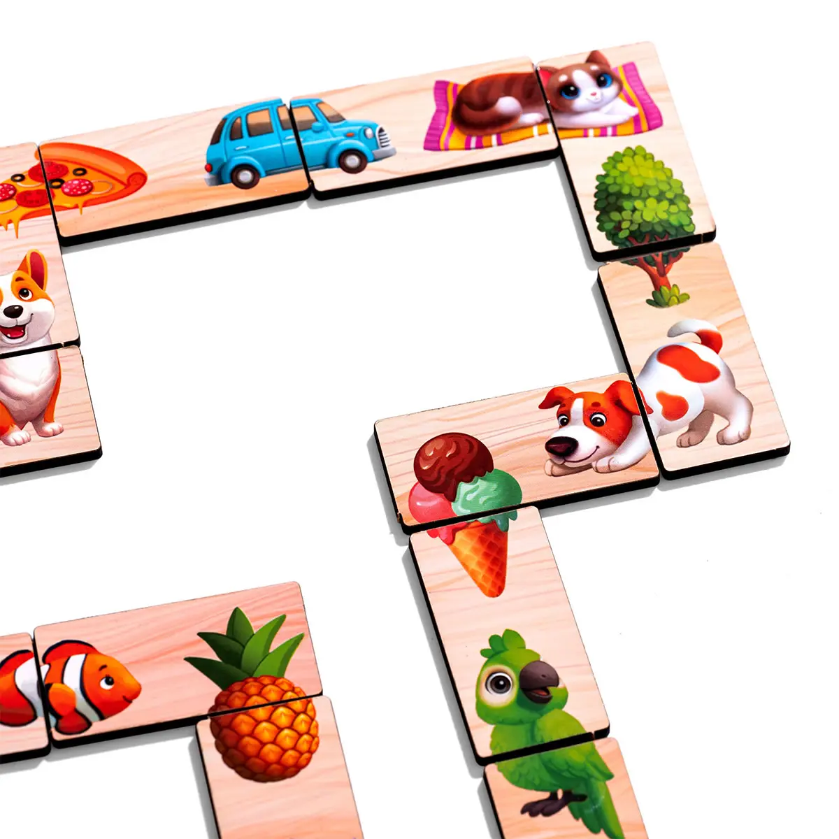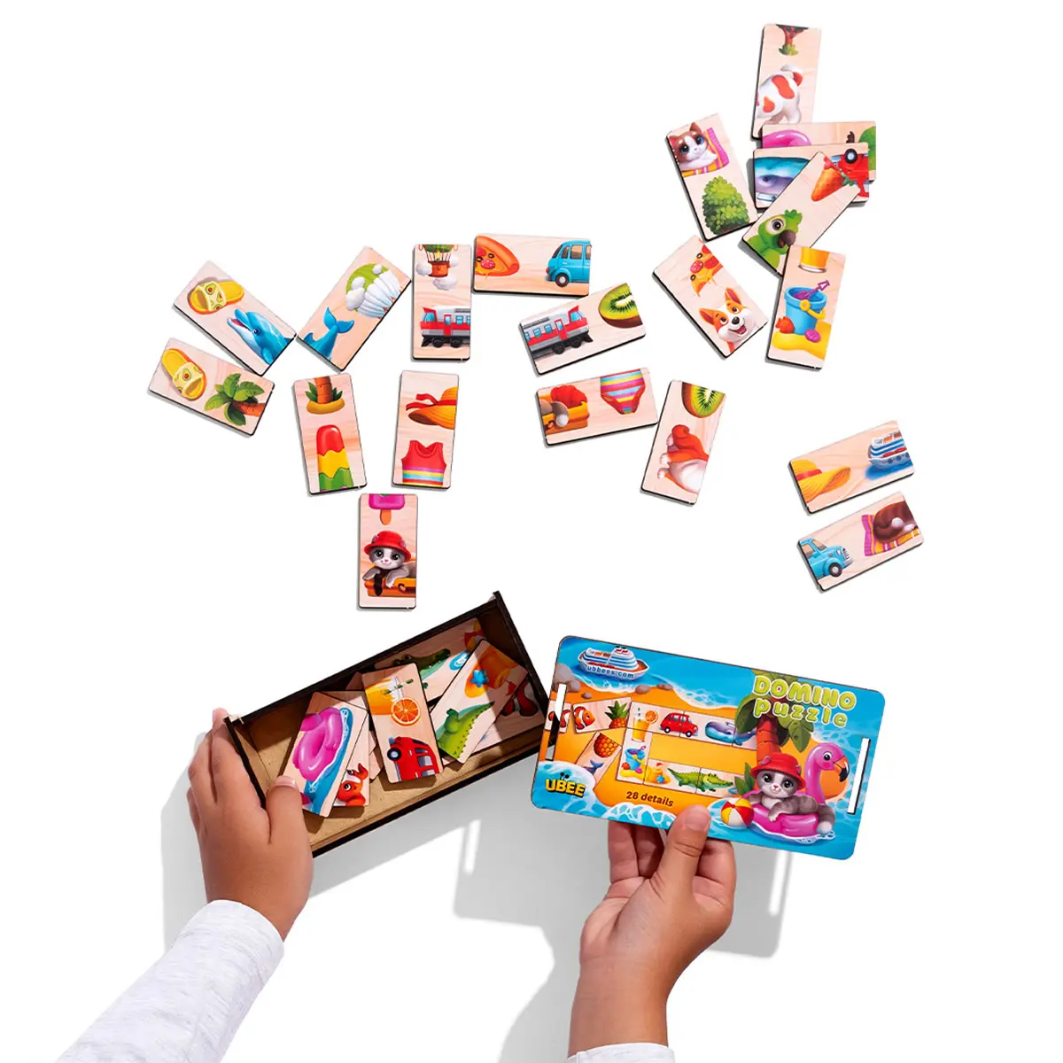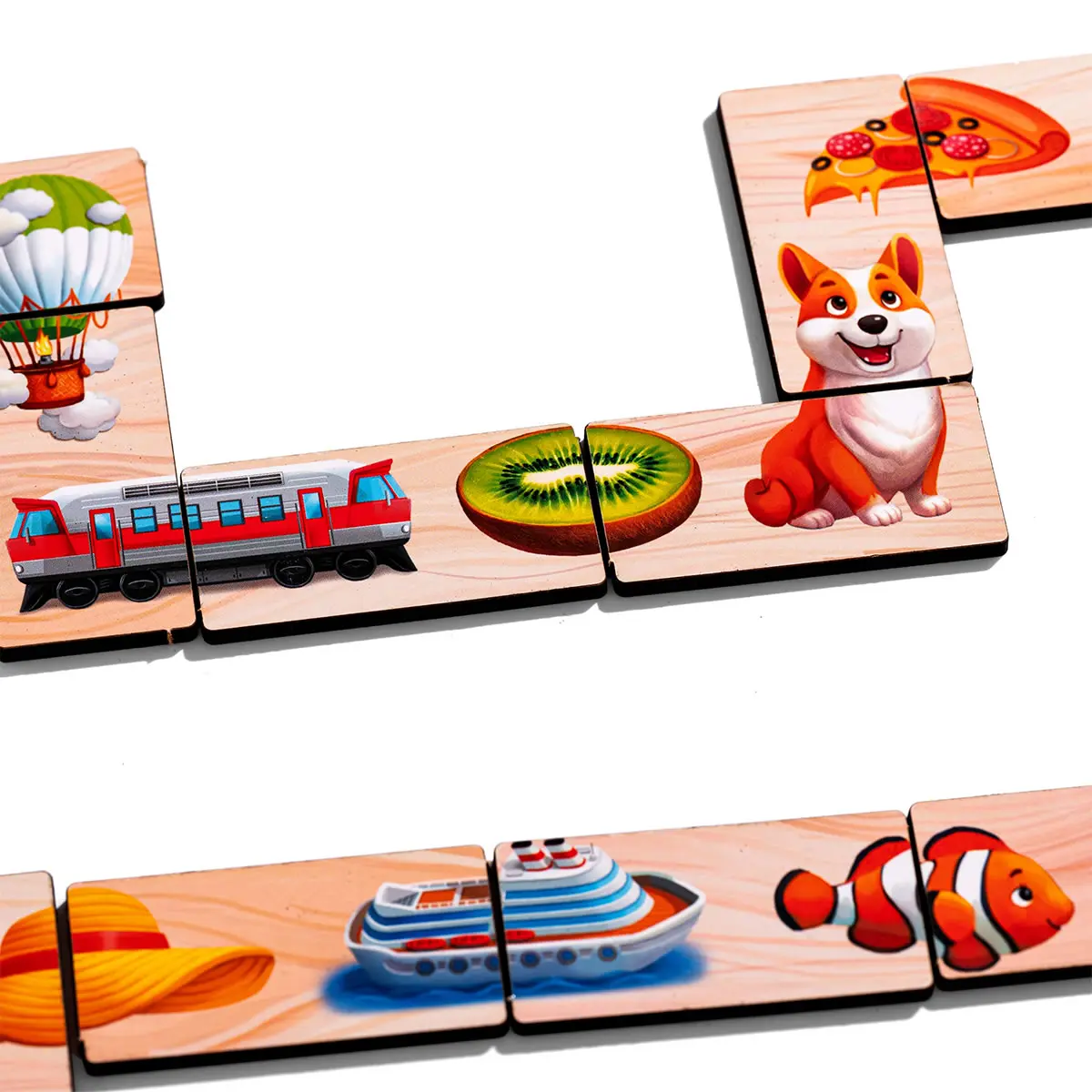 Predstavte si dieťa, ako majster puzzle, ktoré skladá obrázok z dvoch častí: loď s kapitánom, autobus s pasažiermi, zmrzlinu s malým maškrtníkom. Každá dvojica je nový letný príbeh, ktorý ožíva priamo v dlaniach dieťaťa. Hra trénuje vizuálne vnímanie a logiku a zároveň dáva radosť z objavovania.