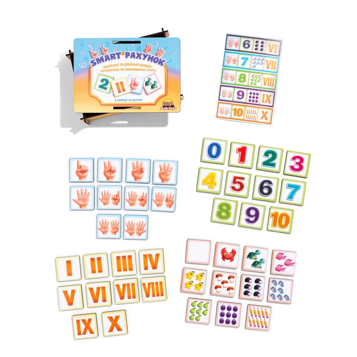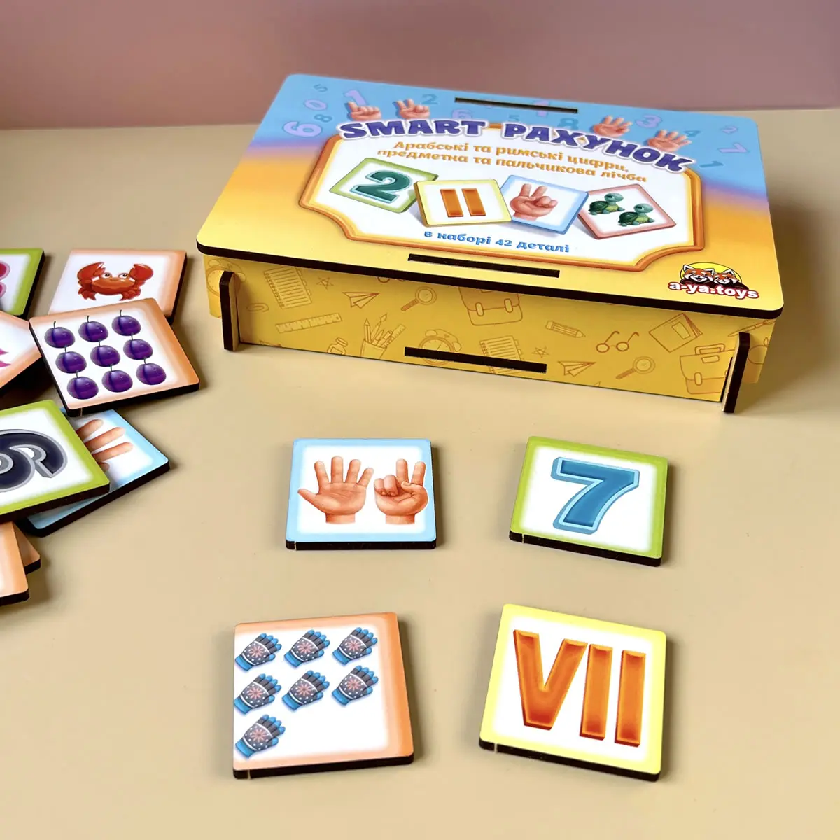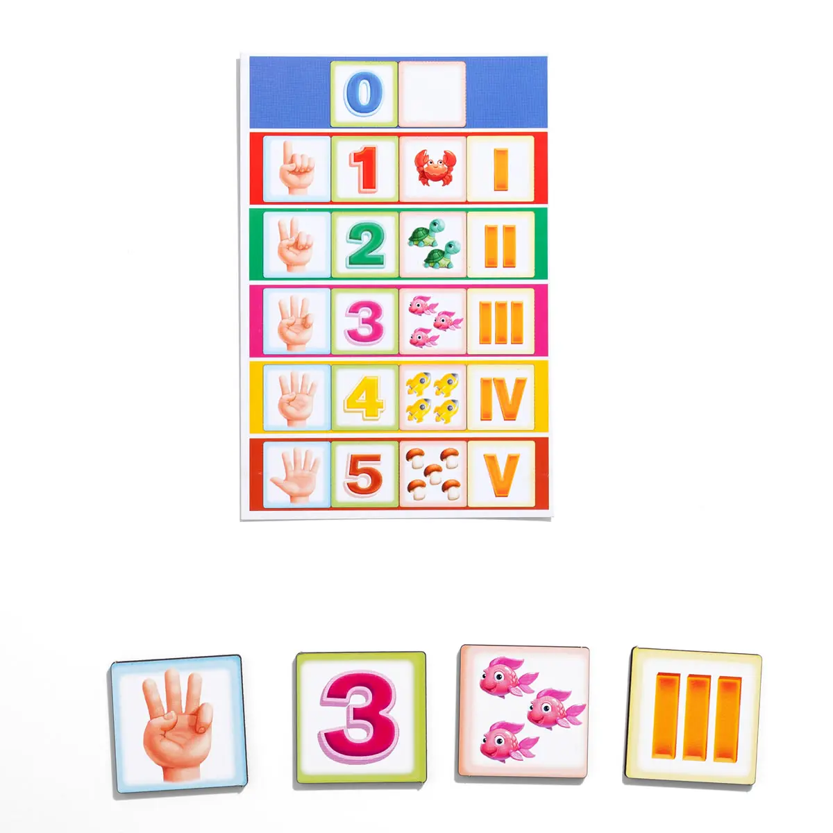 Dieťa objavuje svet čísel vo všetkých jeho formách: arabských, rímskych, na prstoch, vo forme predmetov. Porovnáva, priraďuje, počíta a objavuje, ako vyzerá číslo 5 v rôznych sústavách. Nejde len o učenie čísel – rozvíja sa matematické myslenie, pamäť a chápanie množstva prostredníctvom hry.