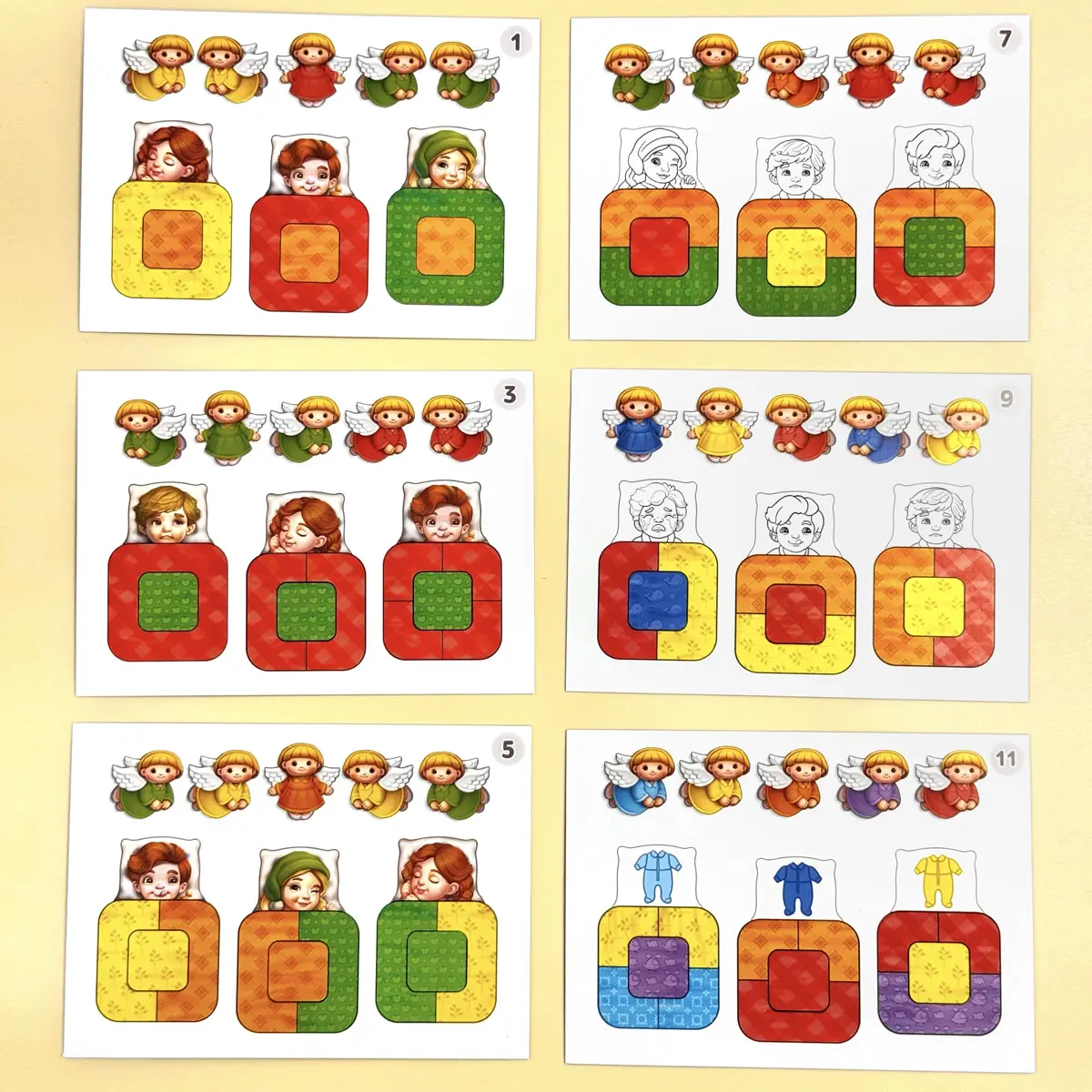 • Kartičky s úlohami : Obsahujú úlohy rôznej zložitosti. Musíte nájsť prvky podľa farby, tvaru, fragmentu atď.