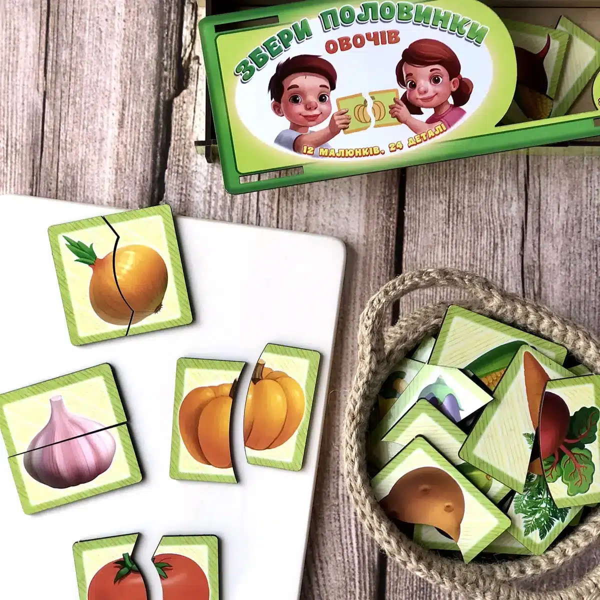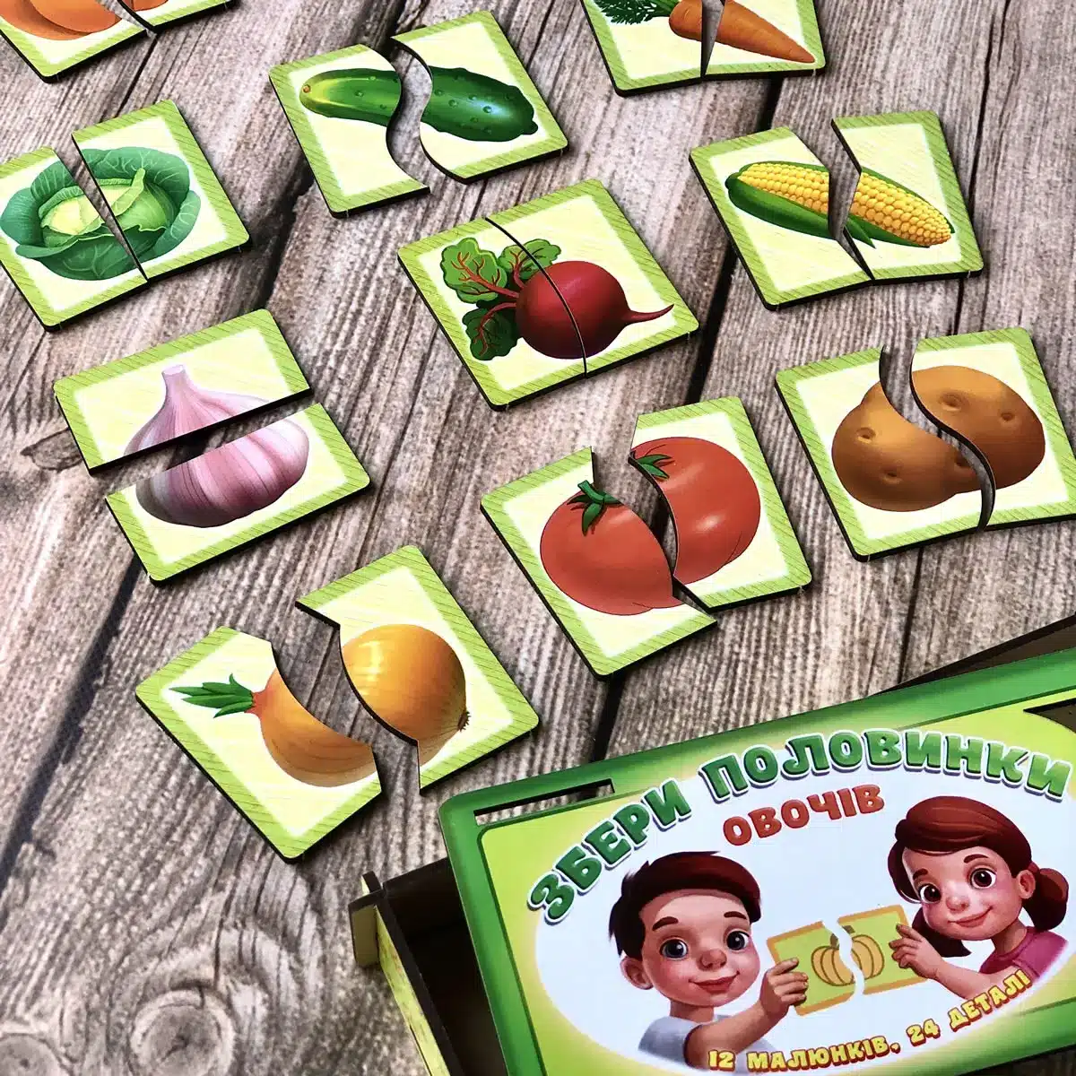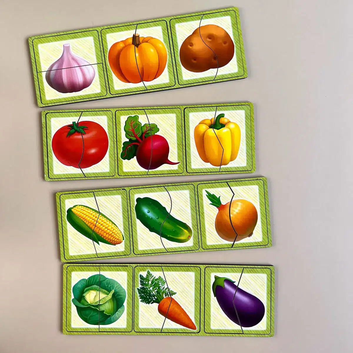 🧩 Sada obsahuje 12 obrázkov zeleniny, pričom každý sa skladá z 2 polovíc. Úlohou je spojiť časti a vytvoriť tak známu zeleninu. Formát je jednoduchý, prehľadný a pre malých výskumníkov veľmi pútavý.
