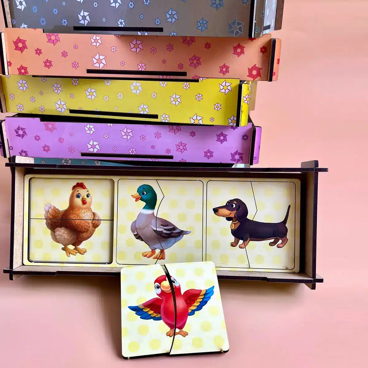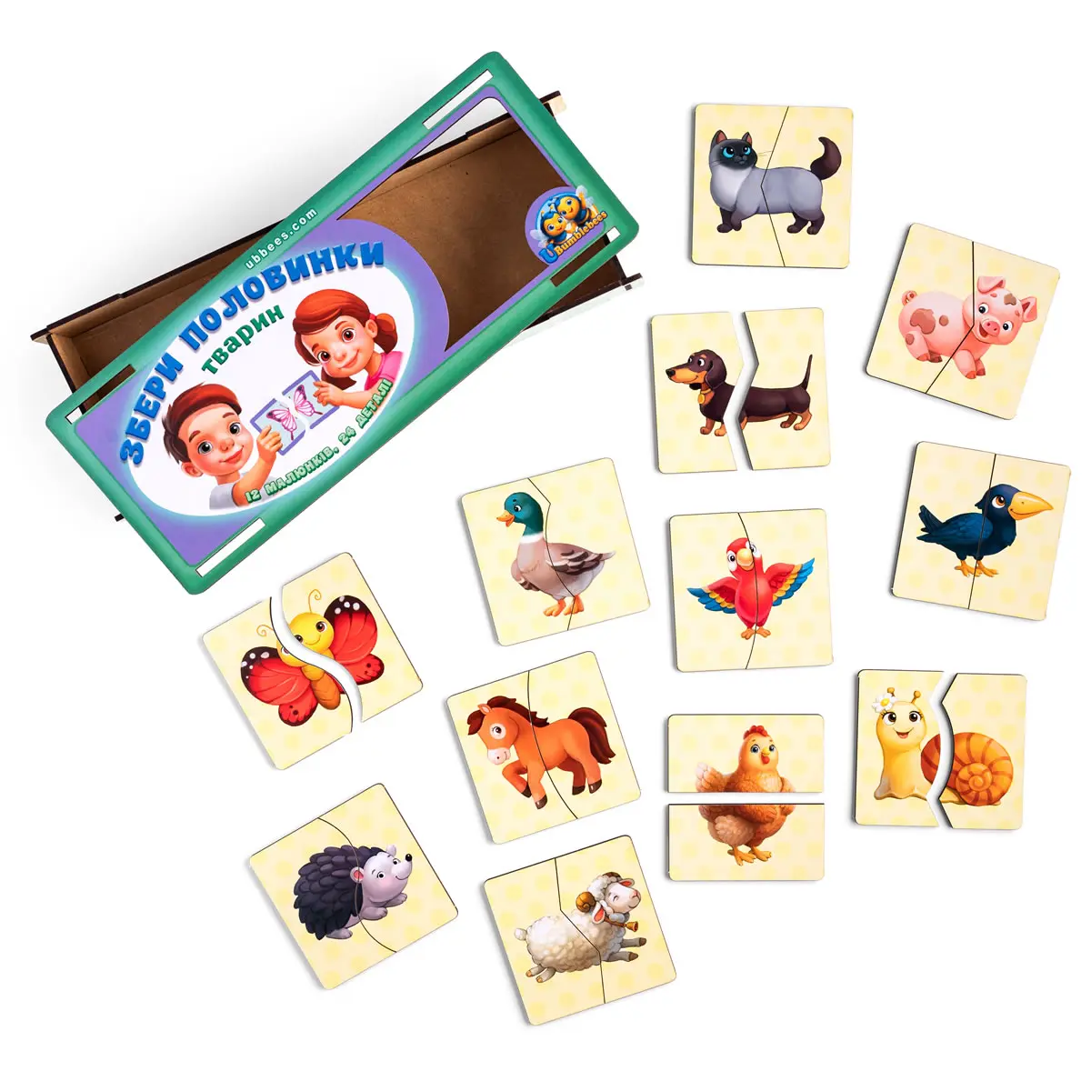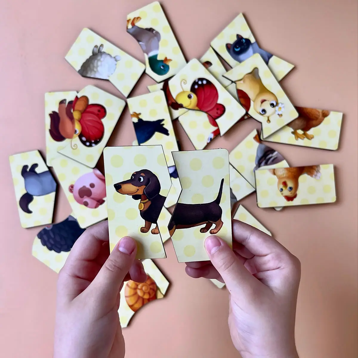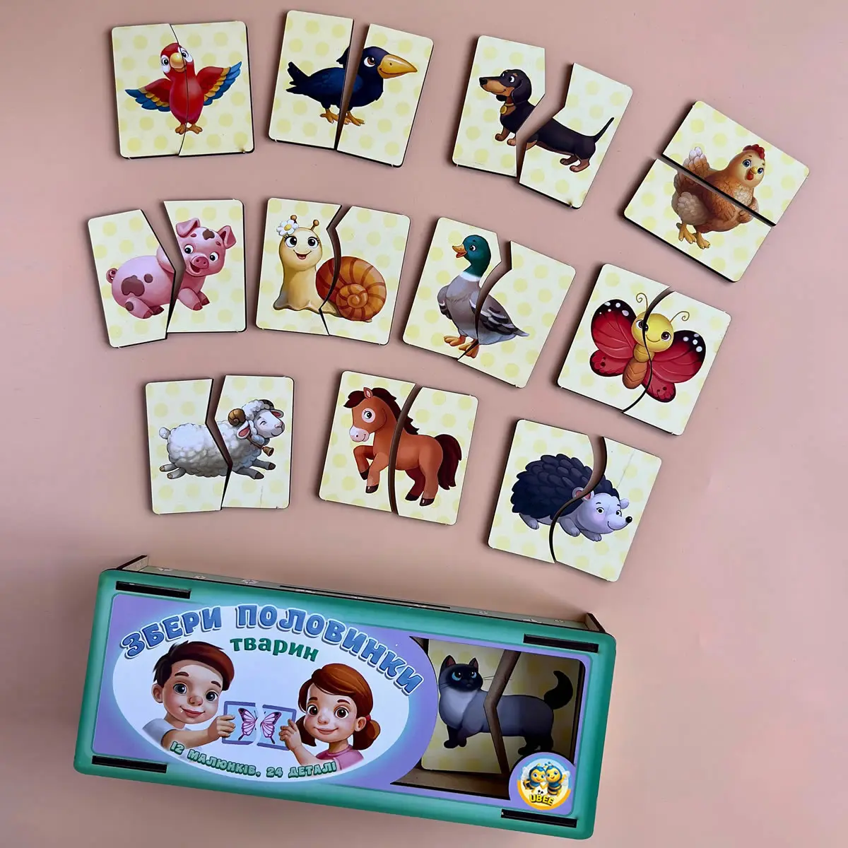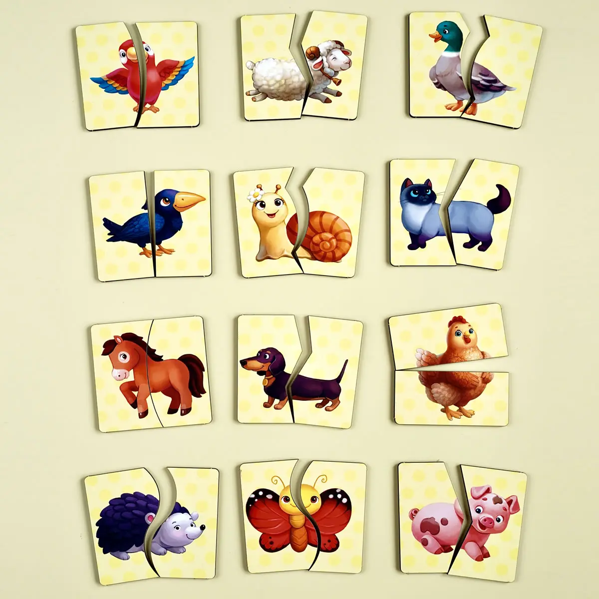 🐾 Pred dieťaťom je 12 zábavných zvieratiek rozrezaných na polovicu. Aby ste vytvorili kompletný obrázok, musíte nájsť a spojiť polovice so správnymi tvarmi. Nie je to len hra – je to rozvoj pozornosti, logiky, motorických zručností a myslenia , ktoré sú v ranom veku také potrebné. Dieťa sa učí všímať si detaily, porovnávať obrysy, porovnávať prvky, aby zostavilo celé zviera – od ovečky po vtáka.