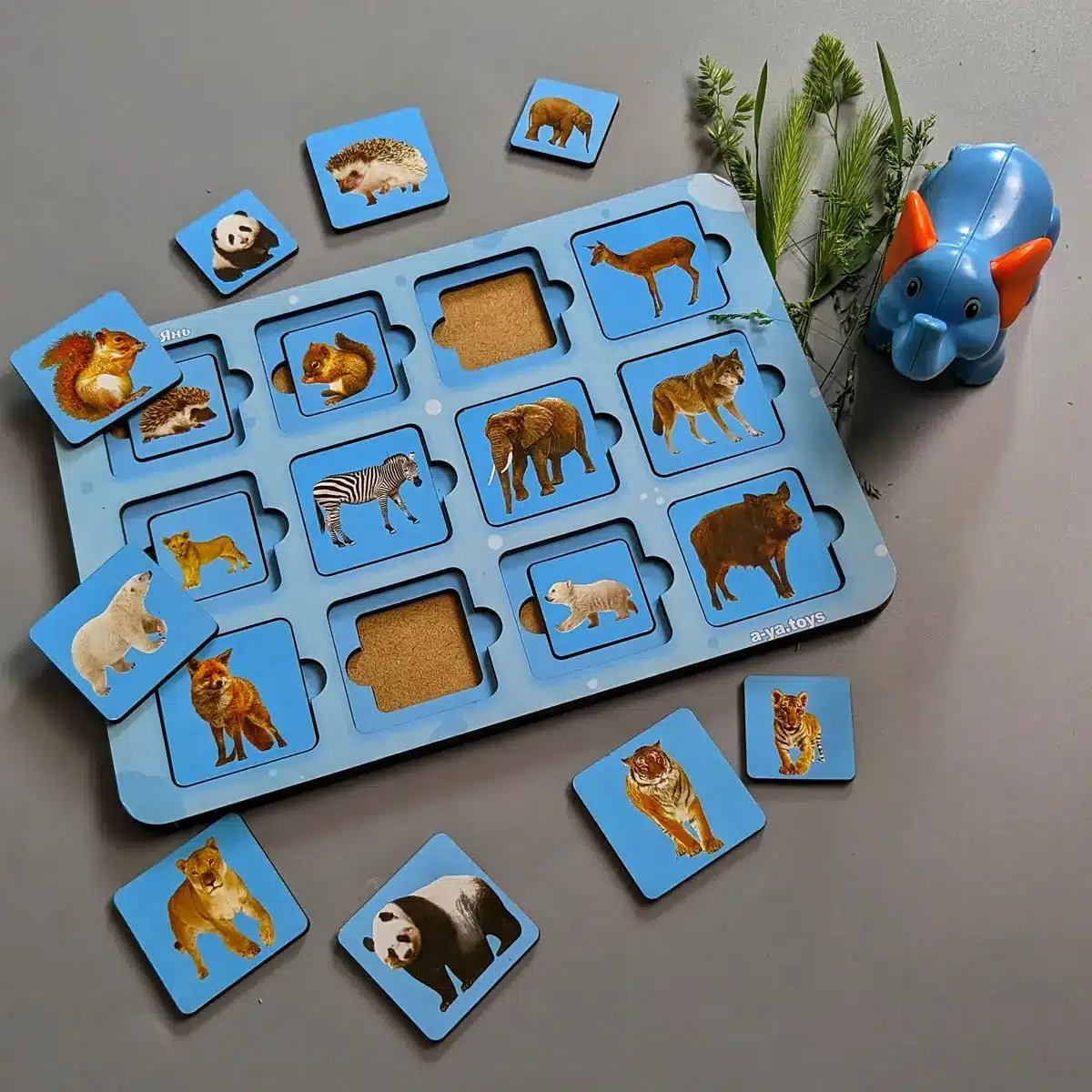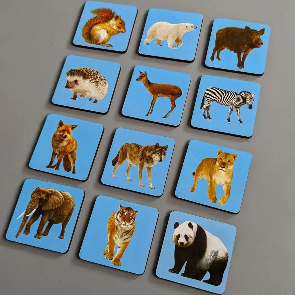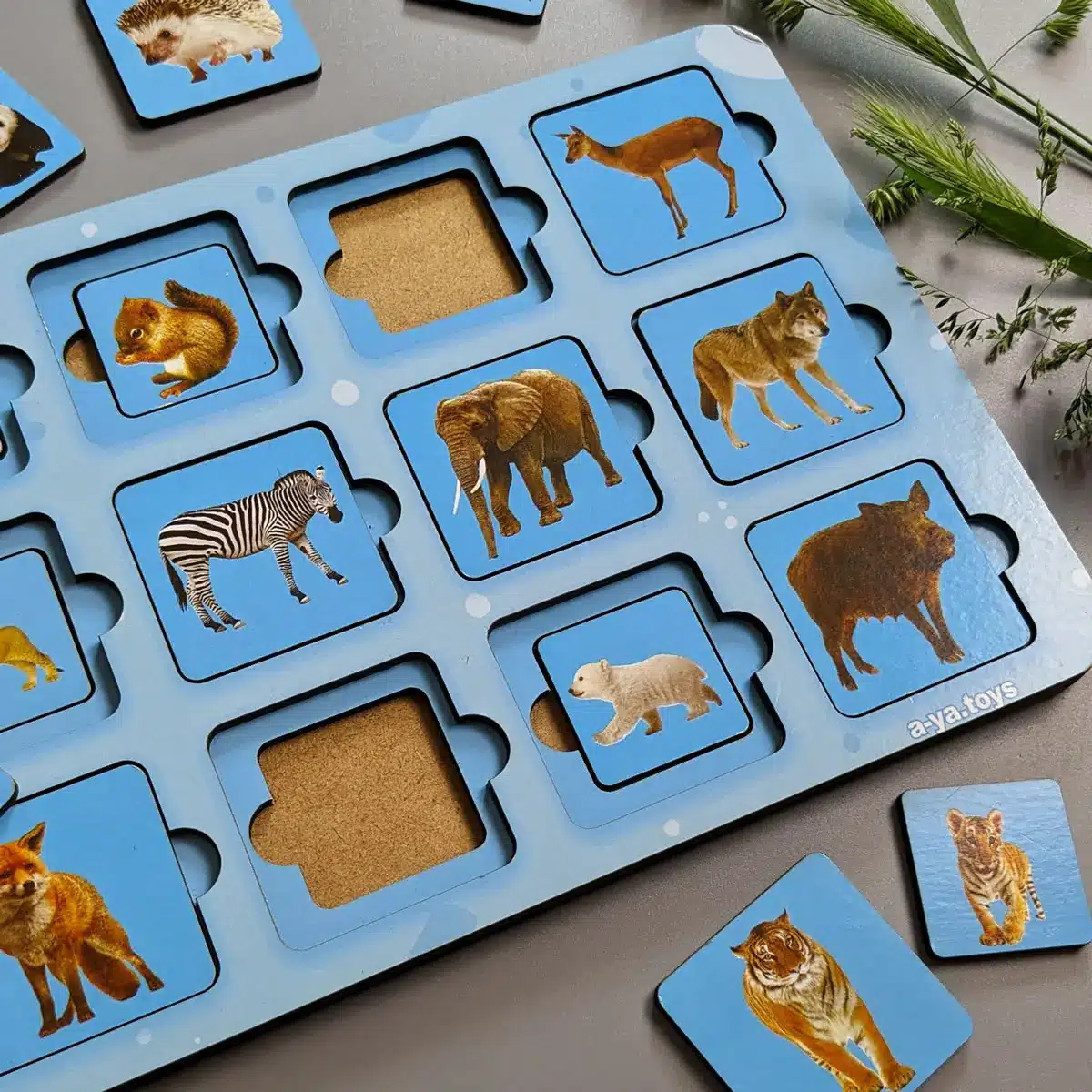 Zahrajte si hru „pamäť“: rozložte niekoľko kartičiek, pozrite sa na ne spolu a otočte ich. Nechajte dieťa nájsť medzi ostatnými správne zviera.