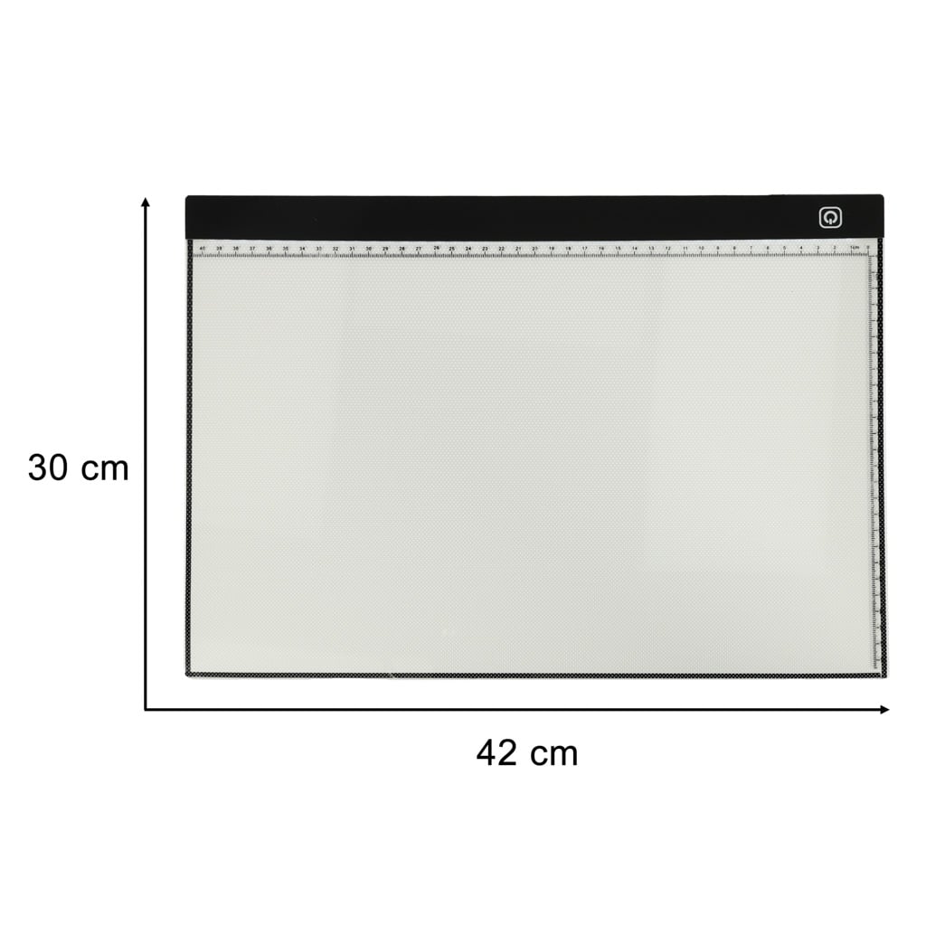 Osvetlená kresliaca tabuľa A3. Uľahčí vám tvorbu výnimočných náčrtov a kresieb. Má tri režimy jasu. Napájanie: USB 5V 2A. Rozmery tabule: 42 cm x 30 cm x 0,4 cm.