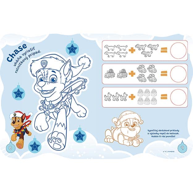 Maľovanky s vianočnými motívmi a samolepkami pre malých fanúšikov psích hrdinov. Formát A4, 16 strán, vek 3+.
