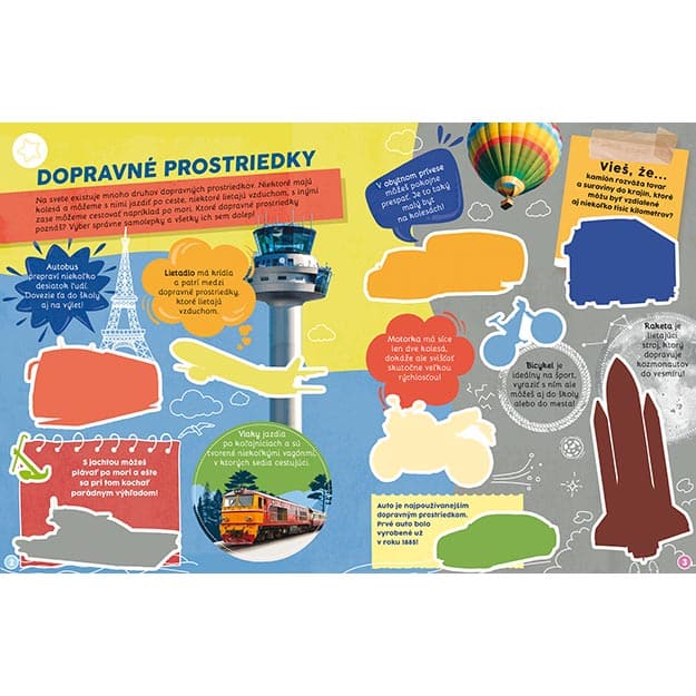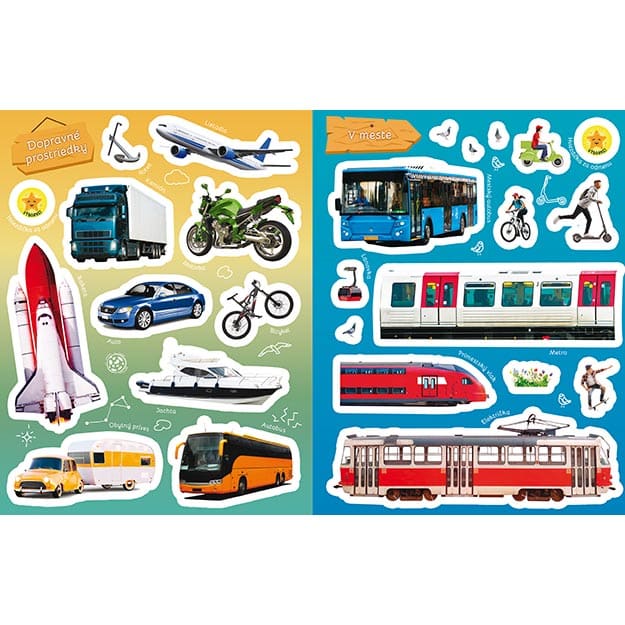 Interaktívna knižka so samolepkami, ktorá deti naučí rozpoznávať dopravné prostriedky. Podporuje logické myslenie, koncentráciu a jemnú motoriku. Formát A4 (21×29,7 cm), vhodné od 6 rokov.
