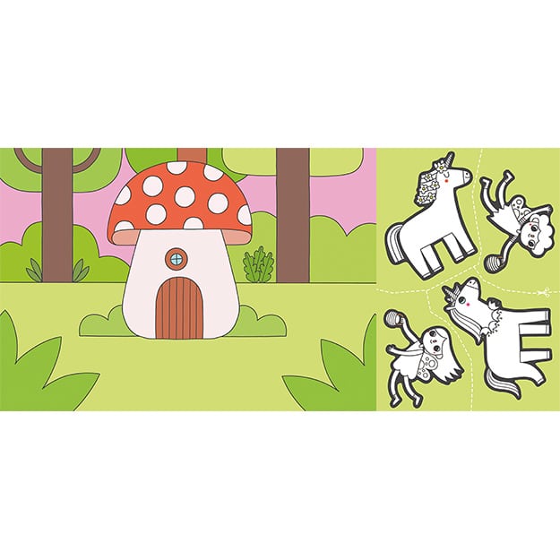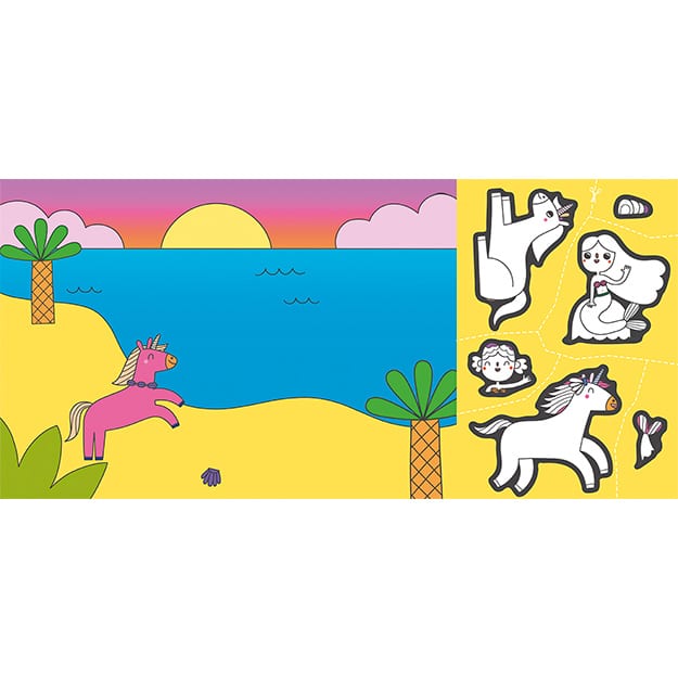 Kreatívna knižka plná aktivít — deti si môžu strihať, maľovať a nalepovať svoje obľúbené jednorožce. Pomáha rozvíjať jemnú motoriku a predstavivosť. Formát A4 (21×29,7 cm), odporúčaný vek 3+.