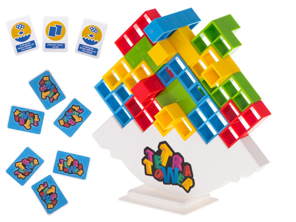 Fantastická tetrisová hra v novom vydaní. Hlavný cieľ: nenechať konštrukciu zrútiť sa! Hra dokonale rozvíja manuálne zručnosti a logické myslenie. Ideálne na rodinné večery. Materiál: plast. Počet hráčov: 1-4. Rozmery kocky: 3×4,5×1,5cm.