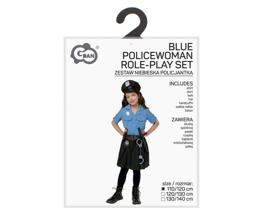 kostým Modrá policajtka obsahuje blúzku, sukňu, opasok, či apku a množstvo doplnkov (putá, vysielačka, obušok), vďaka čomu je hra na policajtku realistická a zábavná. Ideálna na karneval, oslavy aj domáce hranie rolí. Podporuje fantáziu, sociálne zručnosti a hry na povolania. Veľkosť 110/120 cm je vhodná pre deti približne v danom rozsahu výšky.