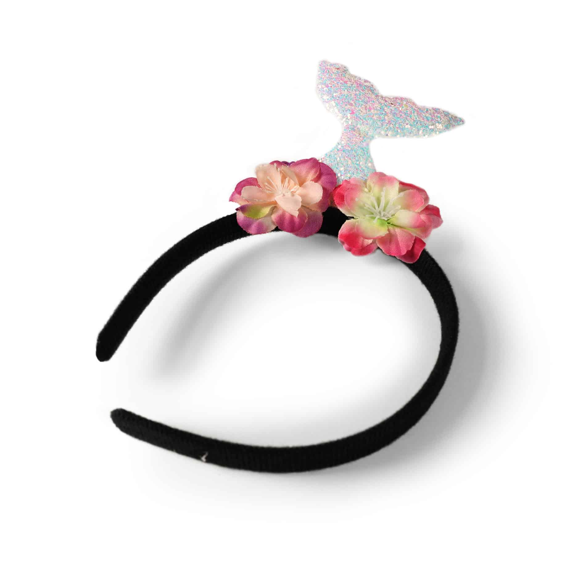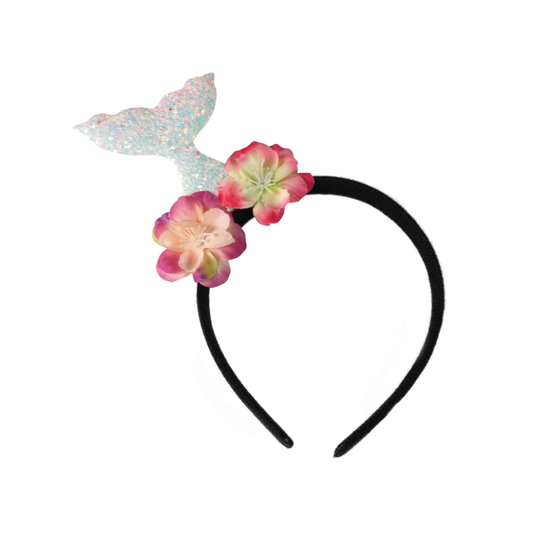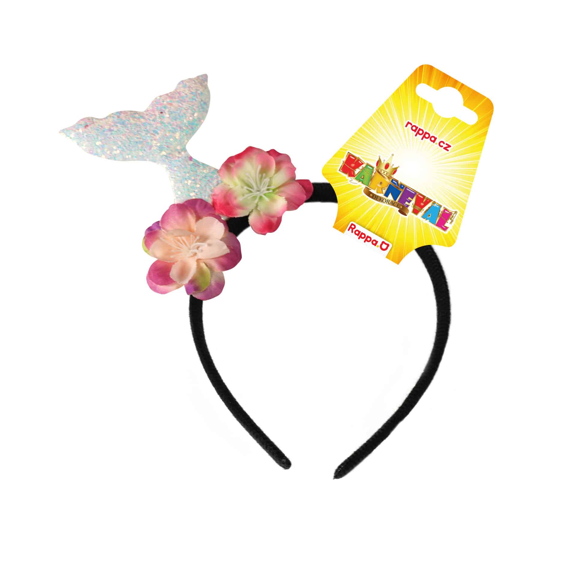 Veselá karnevalová čelenka v štýle morskej víly je zdobená trblietavým rybím chvostom a kvetinami. Ideálny doplnok ku kostýmu alebo len tak na párty!