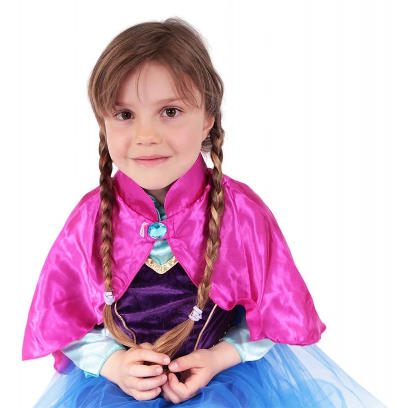 Nádherný dievčenský kostým pre všetky snehové princezny! Kostým vo veľkosti S je určený pre dievčatká vo vekovom rozmedzí 4-6 rokov (105-116 cm). Veľkosť sa môže líšiť od vyobrazenia na obale. Kostým je ušitý v čierno-modrých farbách, v hornej časti je zdobený potlačou, zlatým lemovaním okolo pása. Súčasťou je tiež ružový plášť na mašličku.