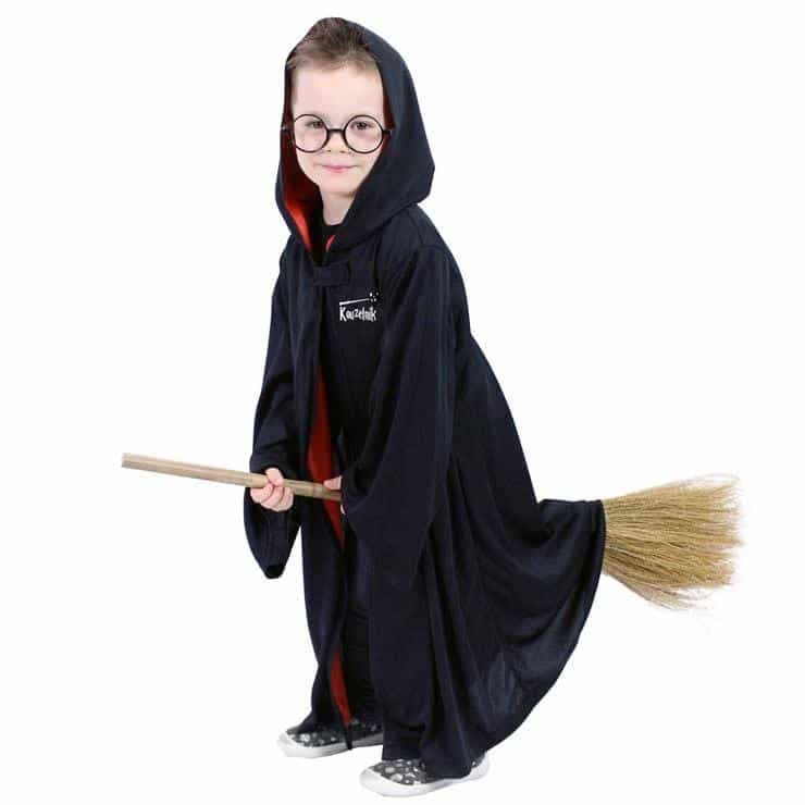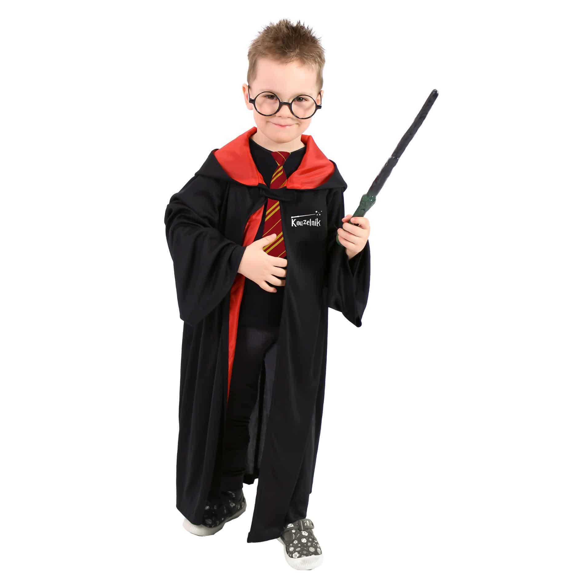 Detský kúzelnícky plášť s kapucňou je určený pre všetky dievčatá a chlapcov vo vekovom rozmedzí 3-7 rokov 104-136 cm. Plášť čierno-červenej farby so zapínaním pri krku je na ľavej strane zdobený nápisom Kúzelník. Súčasťou kostýmu sú okuliare a kravata. Dĺžka plášťa cca 75 cm.
