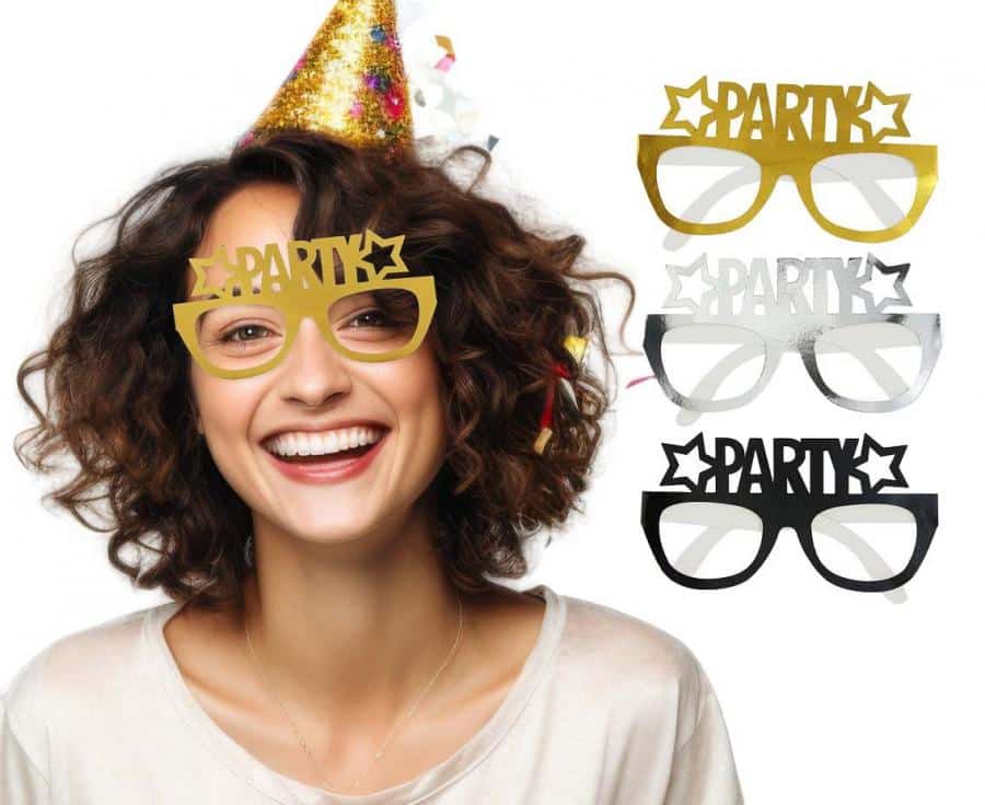 Party okuliare v zlatej, striebornej a čiernej farbe rozprúdia zábavu na každej oslave.
