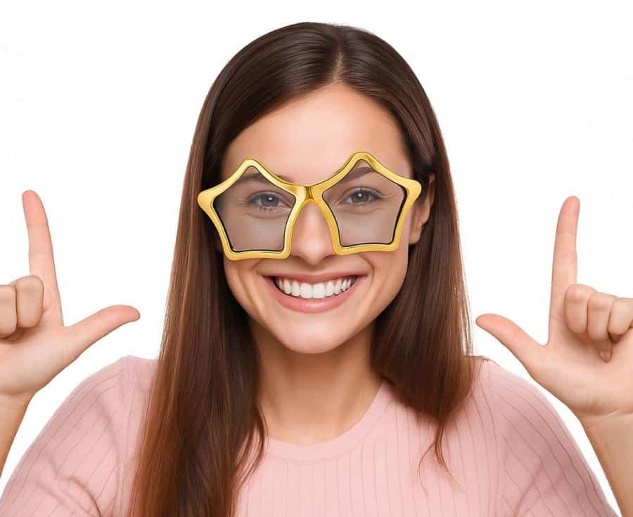 Okuliare „Zlaté hviezdičky“ sú štýlová párty rekvizita, ktorá rozžiari fotky aj náladu. Skvelo sa hodia do fotokútika, na silvestrovskú oslavu, narodeniny či karneval. Jednoduchý doplnok, ktorý spraví veľký efekt a zabaví deti aj dospelých.